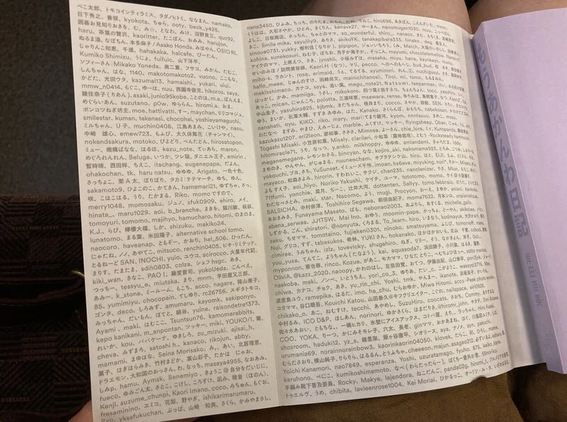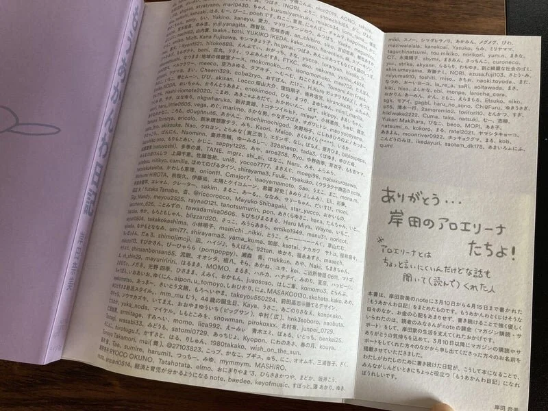 装丁のすごいところのひとつは、裏表紙に「もうあかんわ日記を連載中、岸田家の生活をサポートやマガジン購読者で支えてくださった人たち(希望者のみ)」の名前が入っていること。