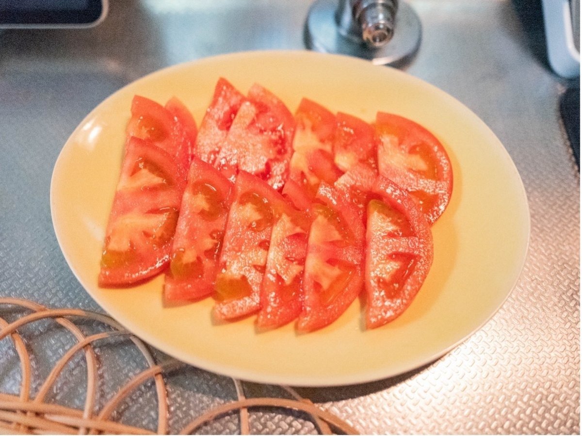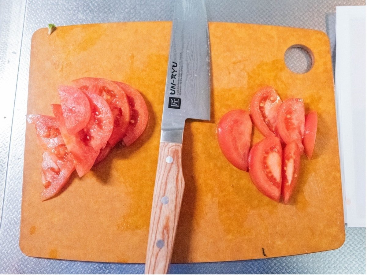 せっかくなので、クシ型と薄切りで、切り方を変えてみた。食べ比べてみたら、本当にさっぱりトマトと濃厚トマトで、味が違った。