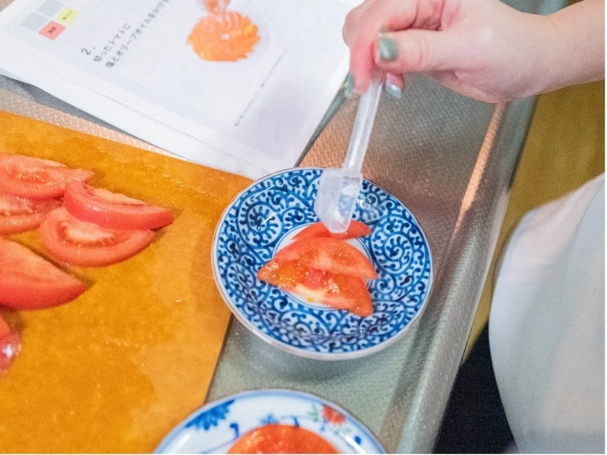 「塩は油に溶けないので、後からかけると浮いちゃうんですね。先に塩をかければトマトとなじんで、オリーブオイルが香りとコクで包んでくれます」