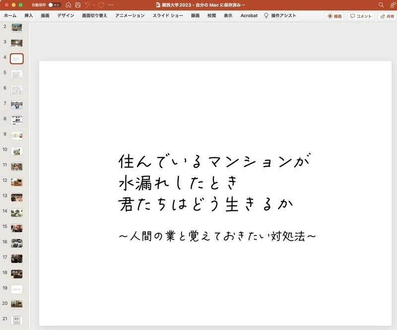 水漏れの渦中にいるわたしが、講義にて未来へ託したことを供養させてほしい。