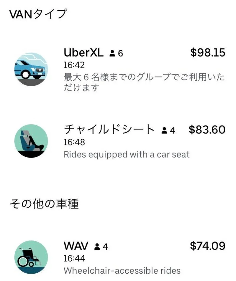 Wheechair-accessible rides(車いすで乗れまっせ)とかいう車種が選べた。こんなん日本で見たことない。しかもちょっと安い。