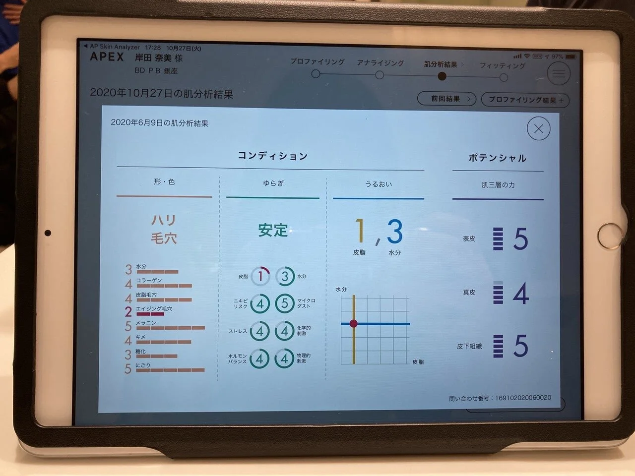 アペックスは、買い足すときは毎回カウンセリングが必要なのだけど、肌分析だけでなく、スキンケア用品の正しい使い方や、生活習慣のお悩みも聞いてくれるのは心強い。