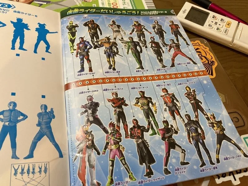 歴代の仮面ライダーが大集合している冊子を入手し、弟に見せる。どれかを指さしてほしかったが、弟は小首をかしげる。